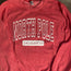 Unisex Sweatshirt made with DTF design with vintage grunge font in white in a Heather red color sweatshirt.